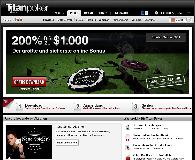 | Titan Poker Homepage (zum Vergrößern ins Bild klicken ): |
