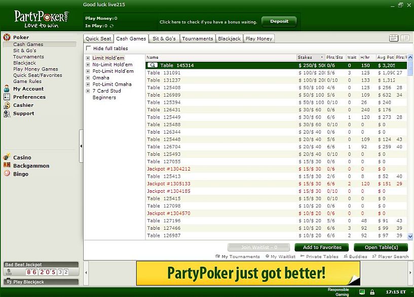 Weil es hier so viele Spieler gibt, ist PartyPoker gut für Texas Holdem Anfänger. Obwohl man in den höheren Limits auch vielen Sharks begegnen kann, gibt es in den niedrigen Limits immer genügend Anfänger. Weniger toll ist, dass PartyPoker verhältnismäßig am meisten an den kleinen Fischen verdient, die um geringe Summen spielen, denn vor allem bei kleinen Einsätzen ist der Rake relativ hoch (bis zu 10% bei $ 0,5/1 Spielen).