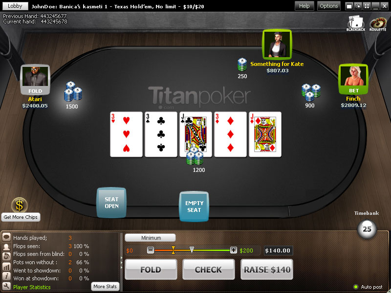 Die Titan Poker Software wird von der Firma PlayTech zur Verfügung gestellt und ist bekannt als äußerst zuverlässig. Das Design der Karten und des Tisches ist sehr benutzerfreundlich und klar – auch bei dem spielen an mehreren Tischen zur gleichen Zeit.