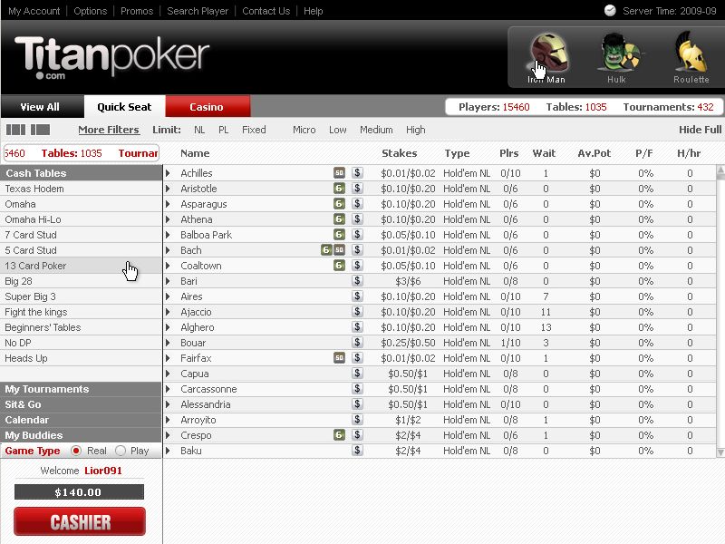 | Titan Poker Lobby (zum Vergrößern ins Bild klicken ): |